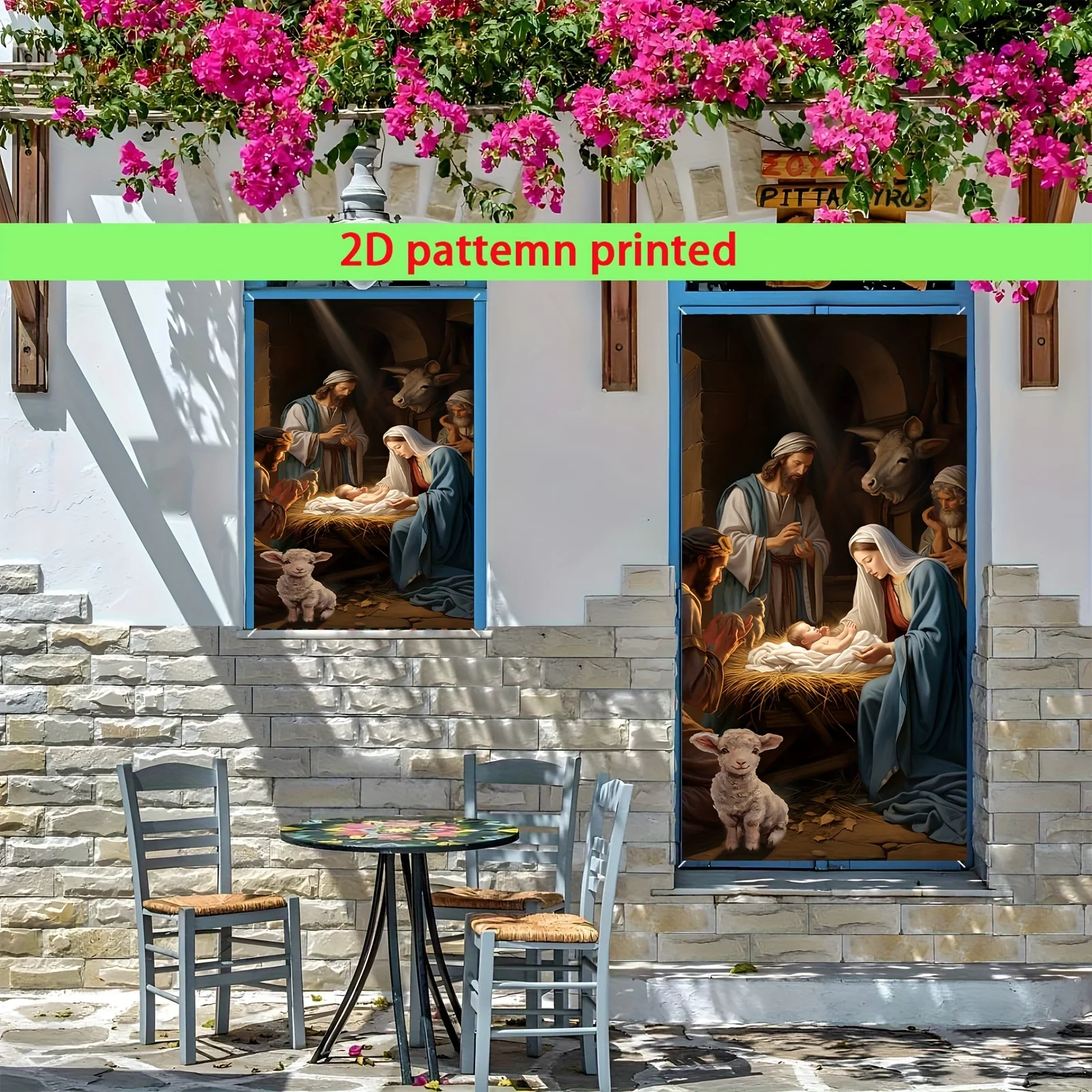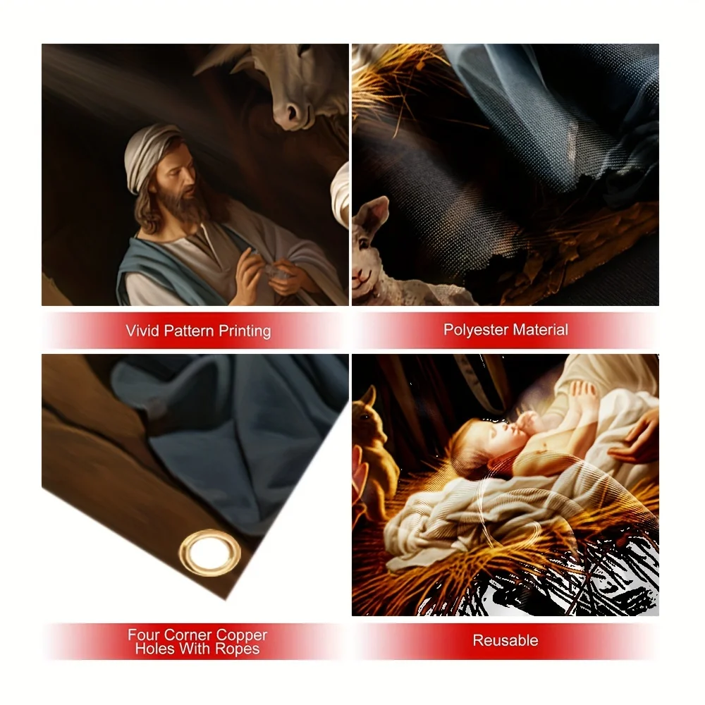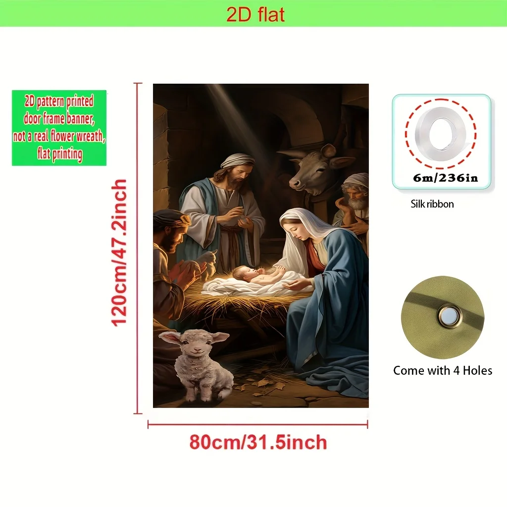 SPECIFICATIONS 2D, a Christmas pie door cover banner with a design of the Nativity of Jesus in SKU: 14:200003699;5:361385#90X180cm17,76$PrecioFree ShippingColorMULTISize90X180cmCantidad*Agregar al carrito